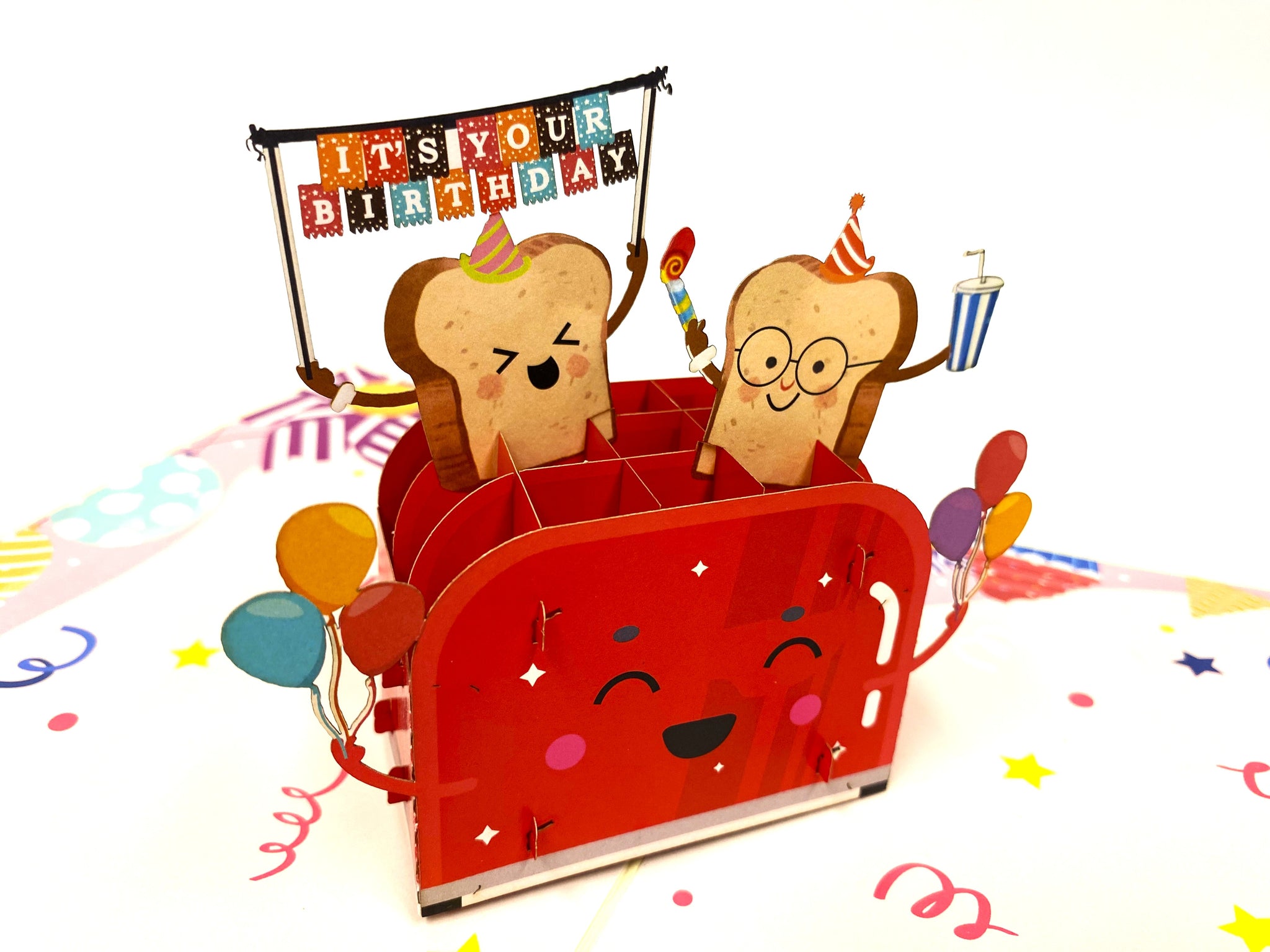Inspiration for the Cute Toast Birthday Pop-Up CardThese toasts are ready to party! This pop-up card perfectly captures the whimsical, heartwarming fun of turning an everyday breakfast moment into a big celebration — because who says birthdays can't start with a cheerful pop of toast? It's all about that cozy, silly joy of sharing smiles, surprises, and good vibes with loved ones. You can practically hear them cheering "Happy Birthday!" and feel the warm fuzzies whenever you open this awesome pop-up card!
